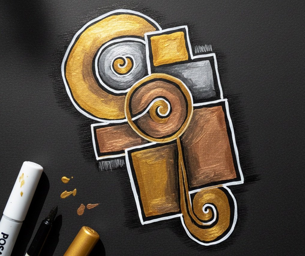 Metallic markers on dark paper create a kind of quiet radiance that feels almost ceremonial—lines that glow, shapes that shimmer, and pages that seem to hold their own internal light. When gold, silver, and copper meet deep‑toned paper, the effect is both intimate and dramatic. It’s a medium that invites presence, slowness, and a sense of wonder as each stroke lifts from the darkness like a small revelation. This post explores that luminous world, focusing on limited palettes, true metallic tones, and the subtle power of pairing metallics with white and black markers for contrast and clarity.
