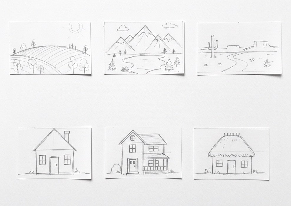 Small sketches—tiny landscapes, micro portraits, or compact compositions—often appear in beginner sketchbooks. These thumbnails allow the artist to explore ideas quickly and without pressure. They serve as seeds for future drawings and help develop a sense of composition and storytelling.