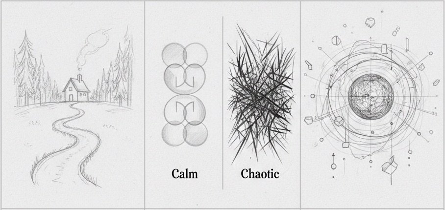 Mood Creation: Choices in symmetry, contrast, and spacing influence whether a piece feels calm, chaotic, or dynamic.