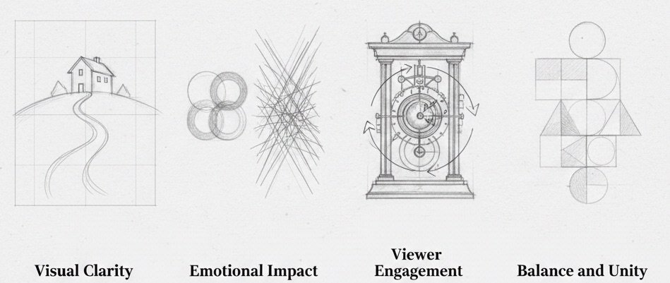 Visual Engagement: Effective composition keeps the viewer’s eye moving, preventing stagnation or disinterest.