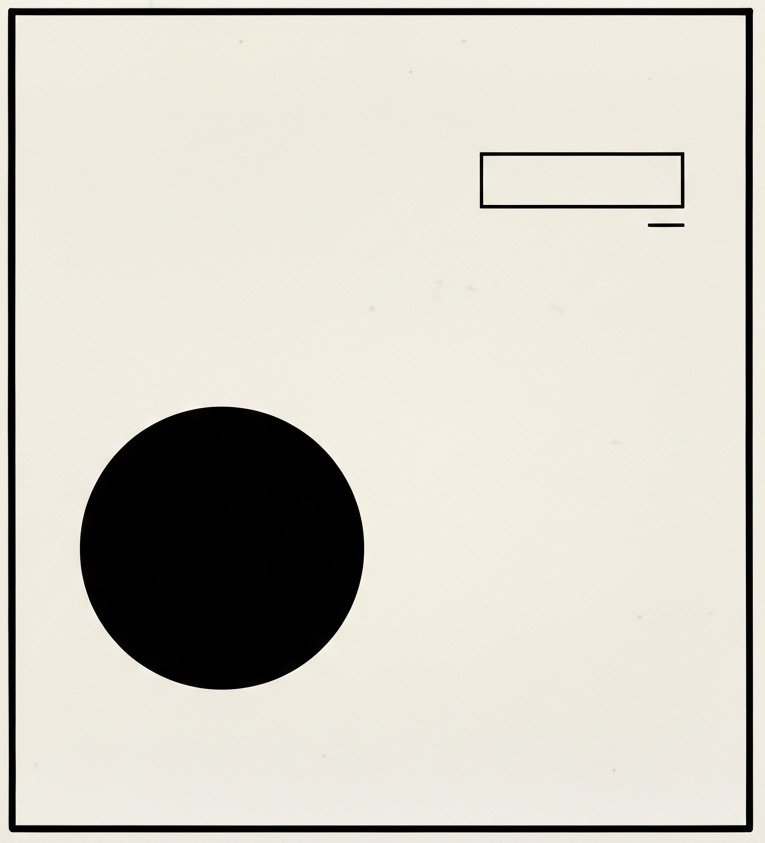 Balance is achieved through contrast rather than mirroring. A large object on one side might be balanced by several smaller ones on the other.