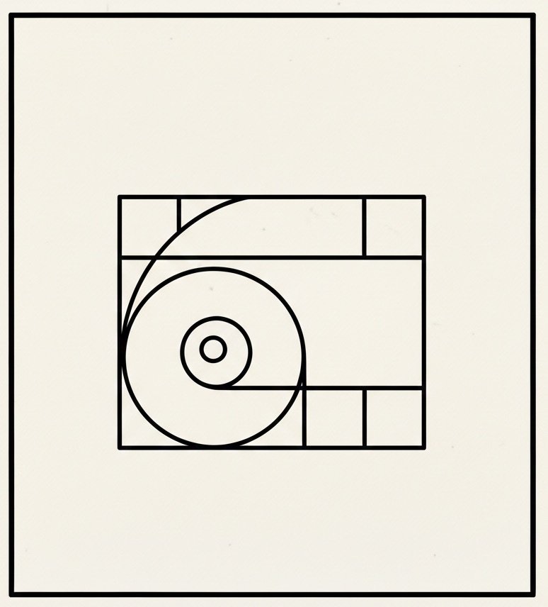 A mathematical ratio (approximately 1:1.618) used to create aesthetically pleasing proportions. The spiral derived from this ratio can guide composition layout.